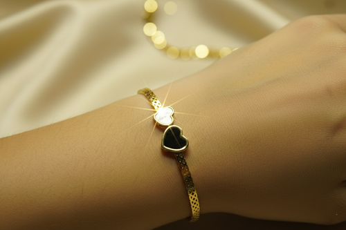 Black n White dual Heart open Cuff Bracelet